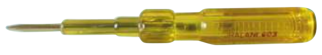 Screwdriver with Green/Yellow Neon Bulb Handle from Transparent Cellulose Accetate with Plated Metal Clip Blades from Selected Steel, Chrome Plated & Insulated.